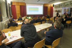 Der Koordinator Wienerwaldtunnel OBI Christoph Gruber präsentierte nach einer kurzen Einführung durch den Bezirkskommandanten OBR Herbert Obermaißer Neuheiten sowie altbewährte Punkte im Einsatzkonzept. Wichtige Punkte wie Alarmierung und Alarmpläne, Herstellen des sicheren Einsatzbereiches, Tunneleinsatz, Kommunikationsplan sowie kommende Übungstermine wurden erarbeitet.