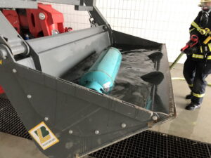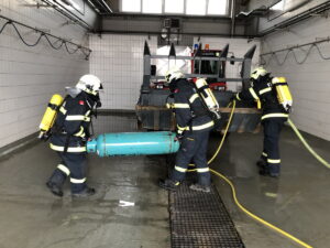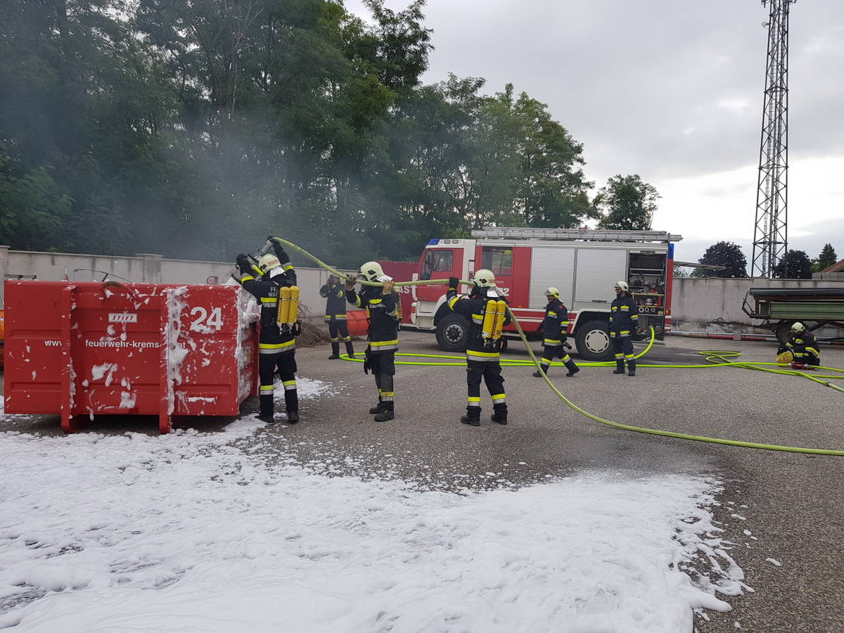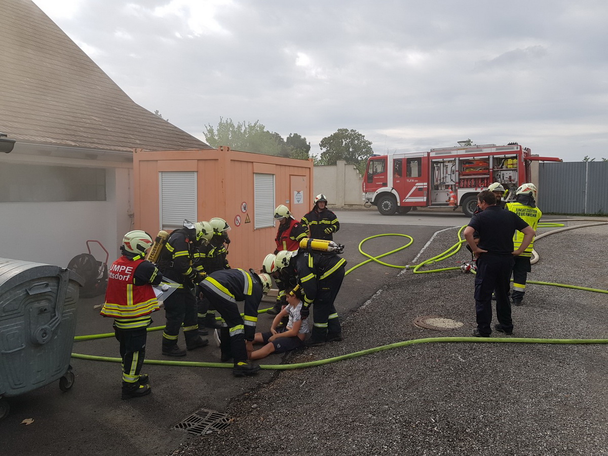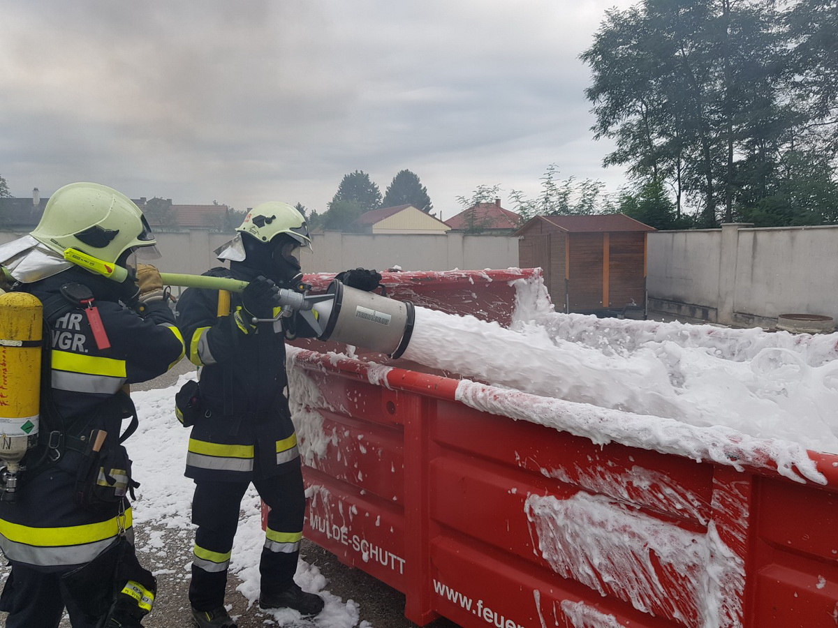 Das zweite Szenario für die Kombi Wagram-Grafenwörth war am Bauhof der Marktgemeinde aufgebaut. Eine dort abgestellte Schuttmulde brannte in voller Ausdehnung. Auch hier zeigten die Kameraden dem Feuer „wo der Haken hängt“ und bauten in Windeseile einen Schaumangriff unter Atemschutz auf, ein Löscherfolg stellte sich rasch ein. Anschließend kamen auch noch Hebekissen und diverse andere Geräte zum Einsatz.