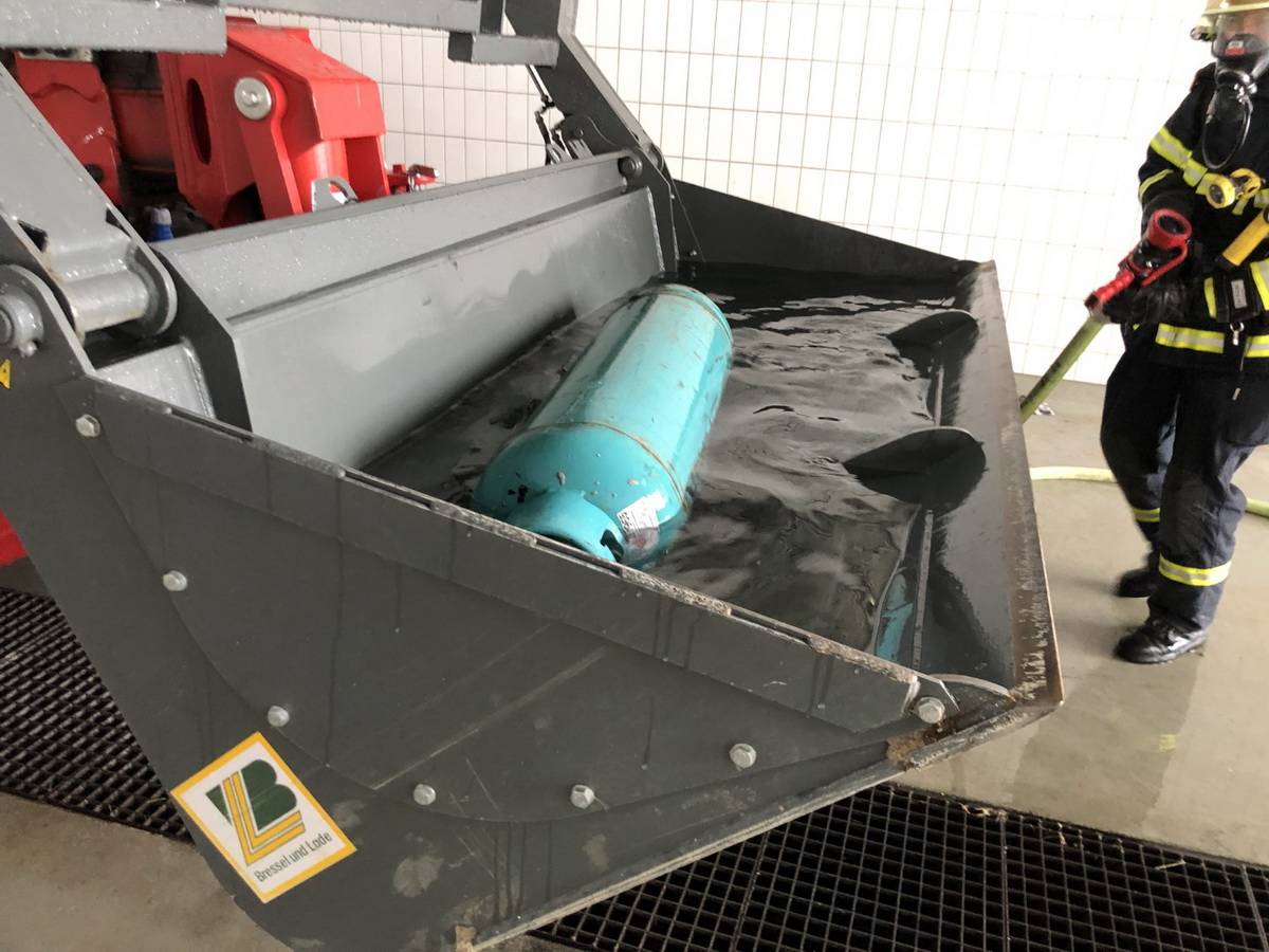 Zuvor wurde die Feuerwehr Feuersbrunn zum simulierten Brand einer Gasflasche am ASFINAG-Stützpunkt Jettsdorf gerufen. Den routinierten Firefightern war rasch klar, was zu tun ist: Die brennende Acetylenflasche wurde aus der Deckung heraus gekühlt und sobald möglich in eine mit Wasser geflutete Baggerschaufel verbracht. Gerade damit fertig geworden kam auch schon der Auftrag so rasch wie möglich die Übungsstelle der FF Jettsdorf anzufahren (siehe oben)