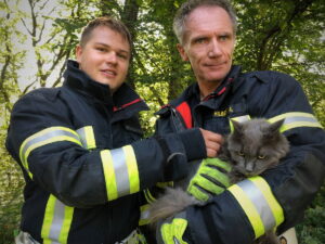 Um den Stubentiger schnell zu helfen wurde eine Schiebeleiter aufgestellt und zwei Feuerwehrmänner kletterten zur Katze hoch. Rasch konnte das Tier eingefangen und dem Besitzer übergeben werden. Die Feuerwehr Klosterneuburg stand dabei mit drei Fahrzeugen und 9 Mitgliedern eine Stunde im Einsatz.