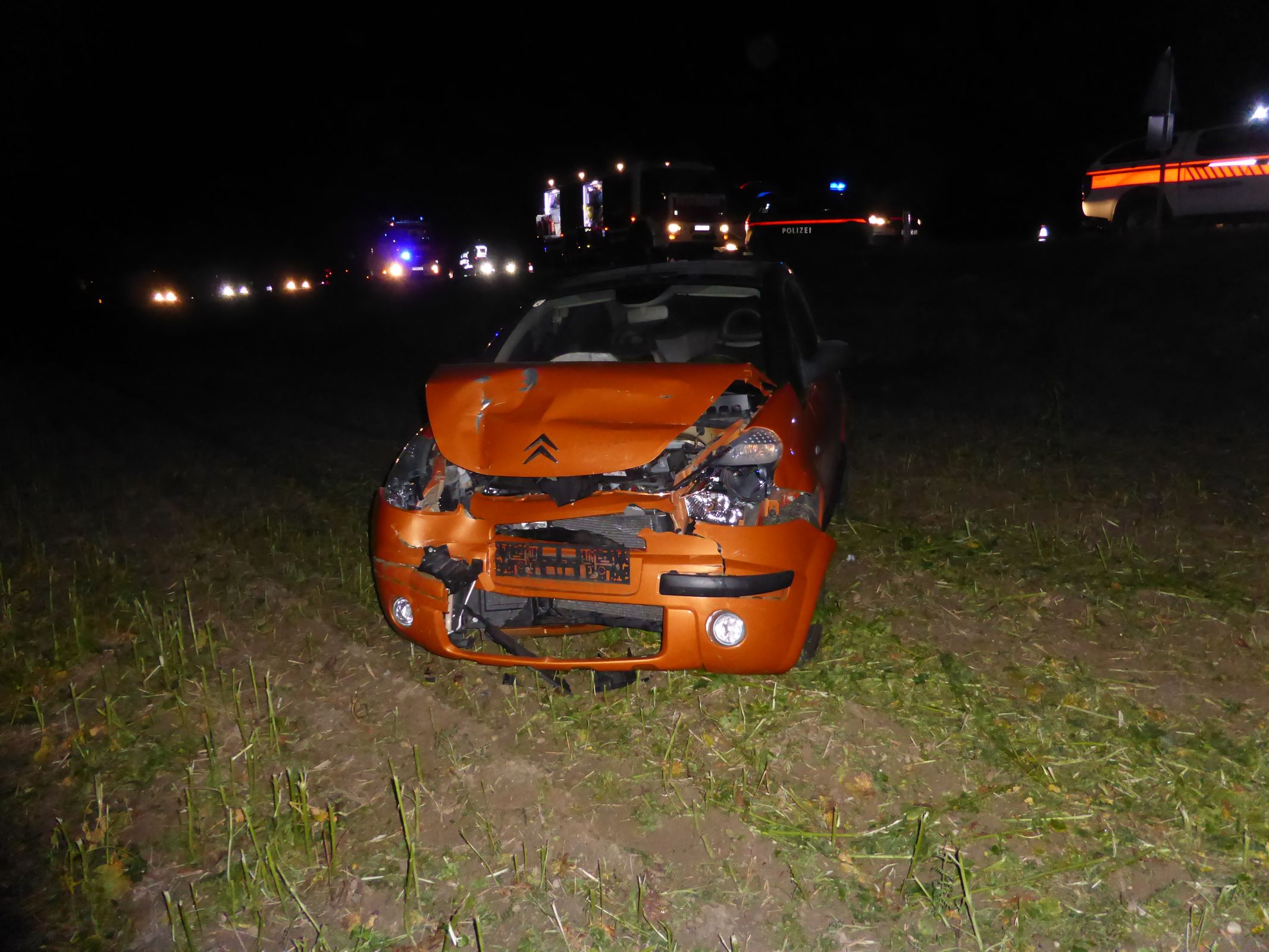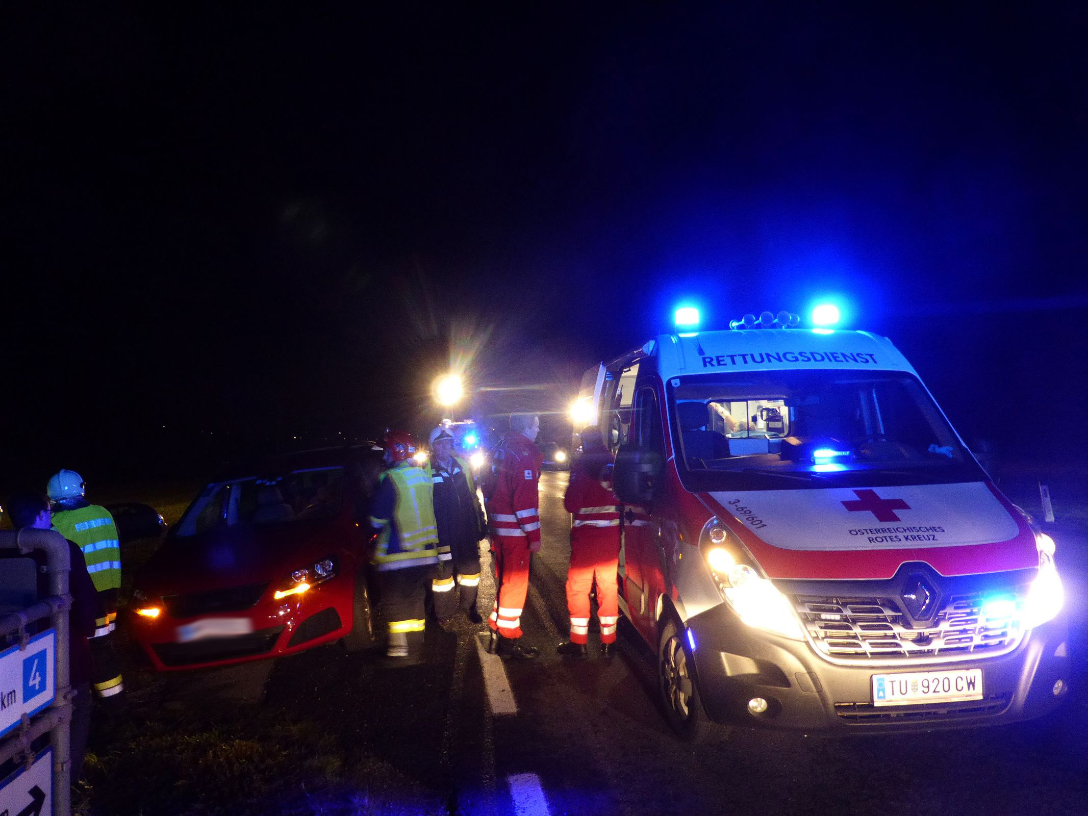 Auf der LB4 kam es bei der Kreuzung nach Barmgarten/Wagram zu einem Auffahrunfall von zwei PKW. Dabei wurden zwei der Fahrzeuginsassen unbestimmten Grades verletzt, ein PKW wurde in einen angrenzenden Acker geschleudert. Kurz nach der Alarmierung konnten die bereits im FF-Haus befindlichen Mitglieder zum Einsatz ausrücken. Nach Ankunft des Rüstlöschfahrzeuges wurde die Unfallstelle auf der stark befahrenen Straße abgesichert und der Brandschutz sichergestellt. Nach Freigabe durch die Polizei wurde die Straße von Trümmerteilen gereinigt und schrittweise wieder für den Verkehr freigegeben. Mittels Kran des Wechselladefahrzeuges wurde der PKW im Acker geborgen und gesichert abgestellt. Das zweite Unfallfahrzeug war soweit fahrtüchtig, dass es zum definierten Abstellplatz gefahren werden konnte. Die verletzten Personen wurden vom Roten Kreuz in Unfallkrankenhäuser nach Tulln und Horn abtransportiert.