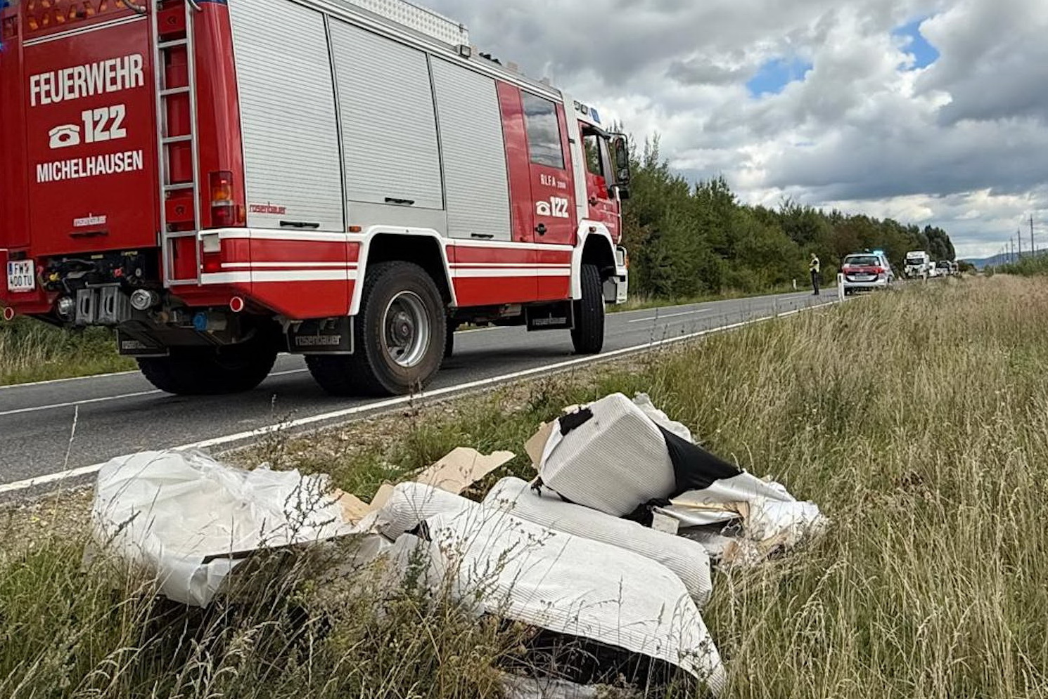 Am 6. September wurde die FF Michelhausen in den Mittagsstunden zu einer Fahrzeugbergung alarmiert. Auf der L2090, hatte ein Lenker von einem Anhänger Ladegut verloren und ein entgegenkommendes Fahrzeug kollidierte mit diesen Teilen. Bei Ankunft der Feuerwehr wurde die Einsatzstelle bereits von der Polizei abgesichert. Personen wurden bei dem Zusammenstoß nicht verletzt. Das Unfallfahrzeug konnte von der Feuerwehr auf einem in der Nähe liegenden Feldweg geschoben werden und wurde dort gesichert abgestellt. Danach halfen die Kameraden noch bei der Entfernung von dem verloren Ladegut.
