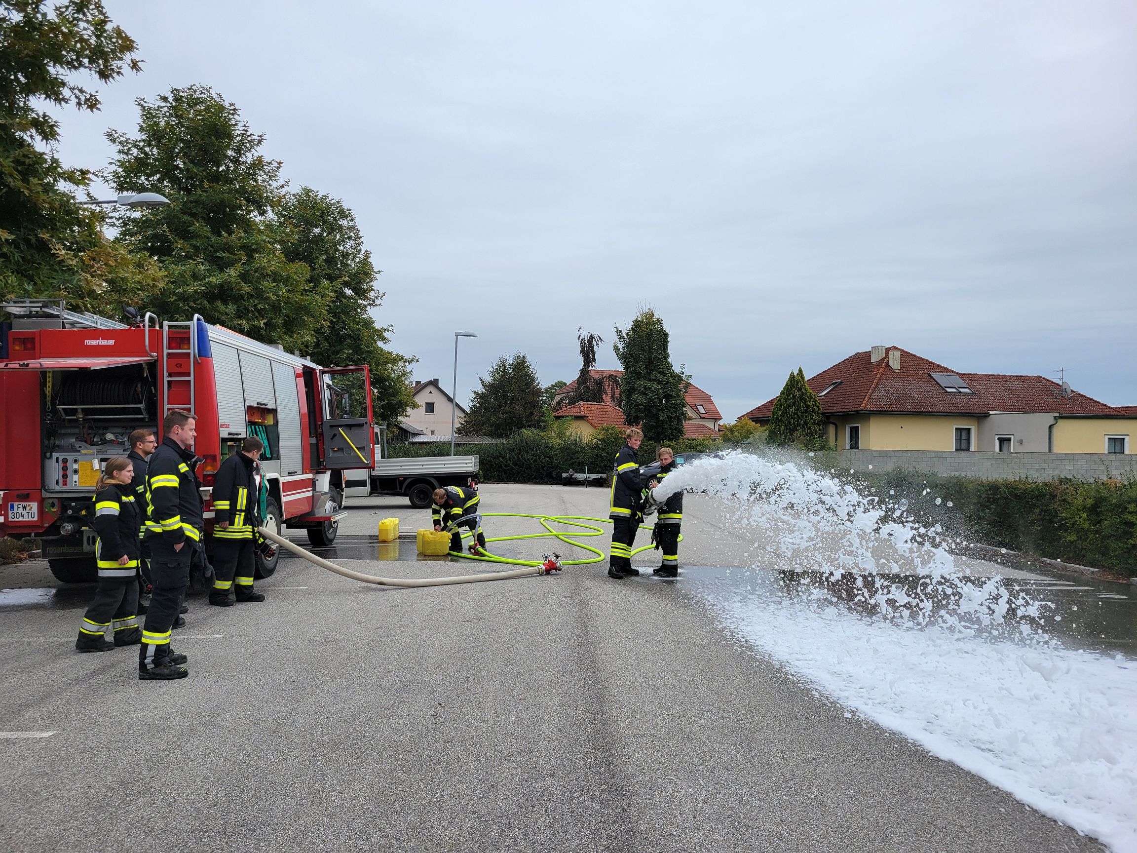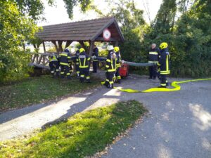 Ein Höhepunkt war die gemeinsame Übung in der Feuersbrunner Kellergasse, wo eine mehrere hundert Meter lange Schlauchleitung über eine Steigung verlegt werden musste. Hier konnten die angehenden Maschinisten ihr theoretisches Wissen direkt in die Praxis umsetzen.