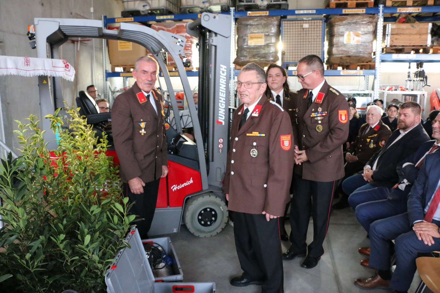 Zahlreiche Gäste aus Politik, Feuerwehr, Partner-Einsatzorganisationen und der Bevölkerung folgten der Einladung und füllten das Feuerwehrhaus mit Leben, Lachen und Erinnerungen. Am Nachmittag konnten die Besucher das nach dem Hochwasser liebevoll renovierte Feuerwehrhaus sowie die modernen Einsatzfahrzeuge der Wehr besichtigen. Auch besondere Gäste waren vertreten – etwa die Drehleiter aus Tulln und das Einsatzleitfahrzeug aus Ollern, die das stolze Bild der Einsatzbereitschaft abrundeten.