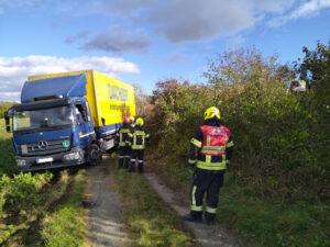 Am 24. Oktober wurde die FF Michelhausen Nachmittags zu einer LKW Bergung alarmiert. Auf einem Güterweg war ein Lastkraftwagen vom Weg abgekommen und in das daneben liegend Feld gerutscht. Bei Ankunft der Feuerwehr stellte sich heraus das die Gefahr bestand, dass das Fahrzeug bei der Bergung umkippen könnte. Da es nach den Regenfällen der letzten Tage nicht möglich war mit einem Fahrzeug in ein Feld einzufahren, musste einTraktor zu Hilfe geholt werden. Mit diesen konnte der Lkw, während der Bergung mittels Seilwinde, gegen das Kippen gesichert werden. Nachdem dann alles vorbereitet war, konnte das Fahrzeug zurück auf den Weg gezogen werden.