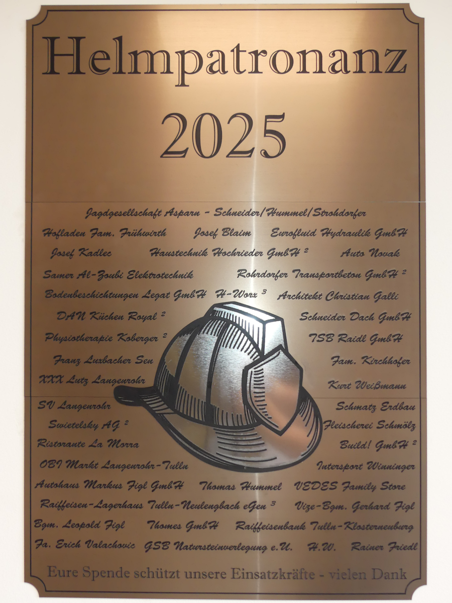 Im weiteren Verlauf verlasen die Kommandanten Wolfgang Bodlak (Asparn), Ralph Brandstetter (Langenrohr) und Thomas Berthold (Langenschönbichl) die Listen der Helmpatenschaften. Da viele Helme das Ende ihrer Nutzungsdauer erreicht hatten, wurde ein Austausch notwendig. Die Finanzierung erfolgte großteils durch Spenden, wobei Bürgerinnen, Bürger und Unternehmen die Patenschaft für Helme übernehmen konnten.