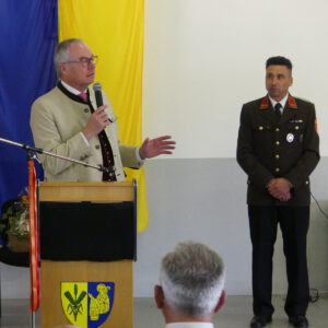 Nach den Ansprachen von Bürgermeister ÖKR Leopold Figl und Landesfeuerwehrkommandant-Stellvertreter Martin Boyer hielt Landeshauptfrau-Stellvertreter Dr. Stephan Pernkopf die Festrede. Im Anschluss wurden mehrere Mitglieder der Feuerwehr Asparn für ihre Verdienste ausgezeichnet.