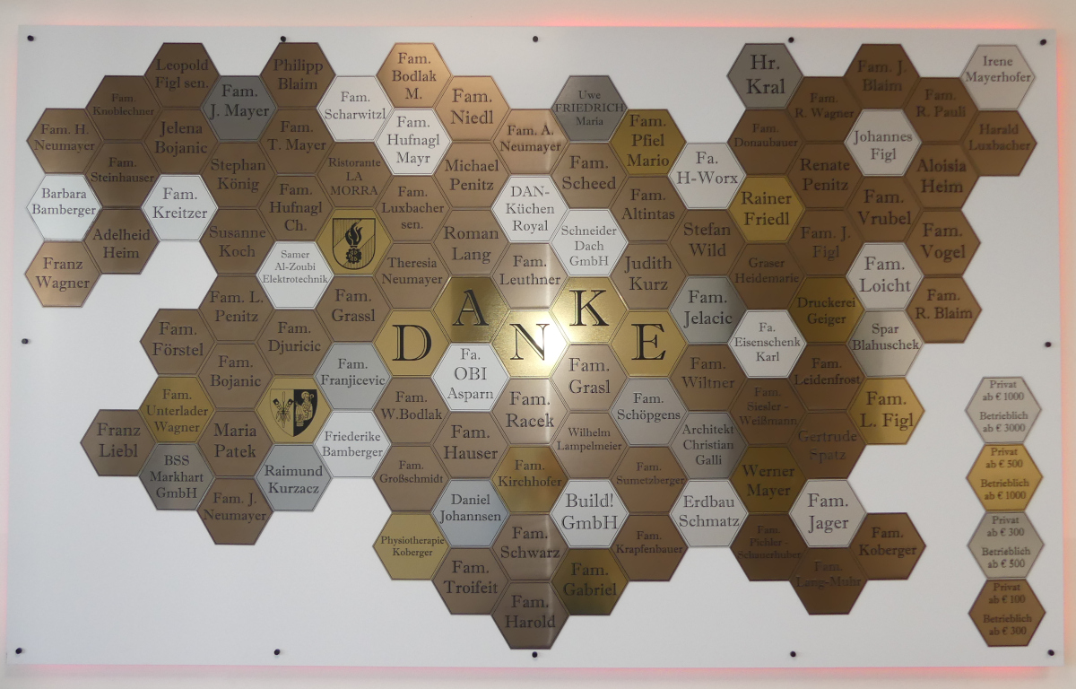 Für ihren besonderen Einsatz beim Bau des neuen Feuerwehrhauses wurden Andreas Bandion, Josef Bandion sen., Uwe Friedrich, Rudolf Blaim, Thomas Mayer, Leopold Liebl und Wolfgang Bodlak mit einer Urkunde und einem Geschenk geehrt.