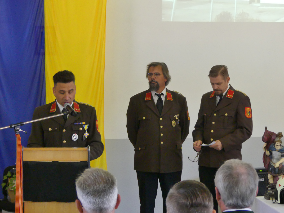Den geistlichen Teil der Feier gestalteten Provisor DDR. Michal Balaz und Feuerwehrkurat Martin Paral, die gemeinsam die heilige Messe zelebrierten und sowohl das neue Feuerwehrhaus als auch die neuen Einsatzhelme der drei Gemeindefeuerwehren segneten.