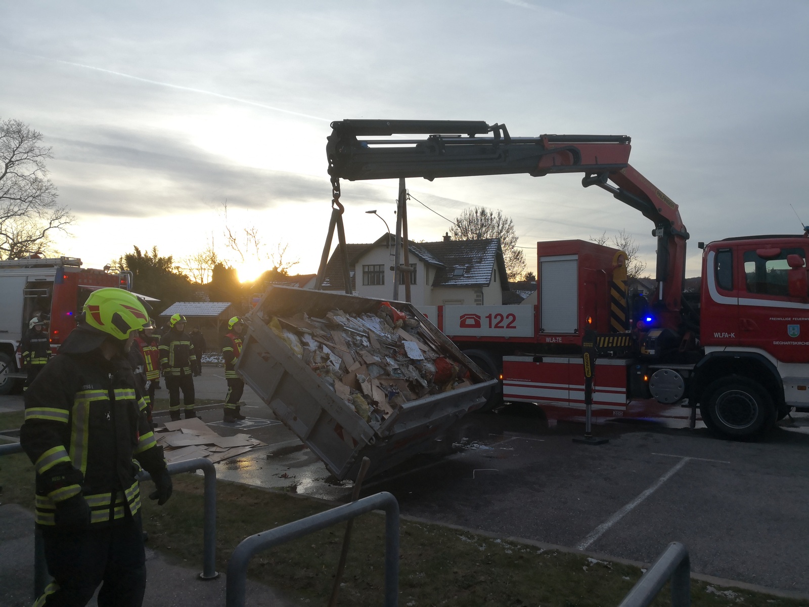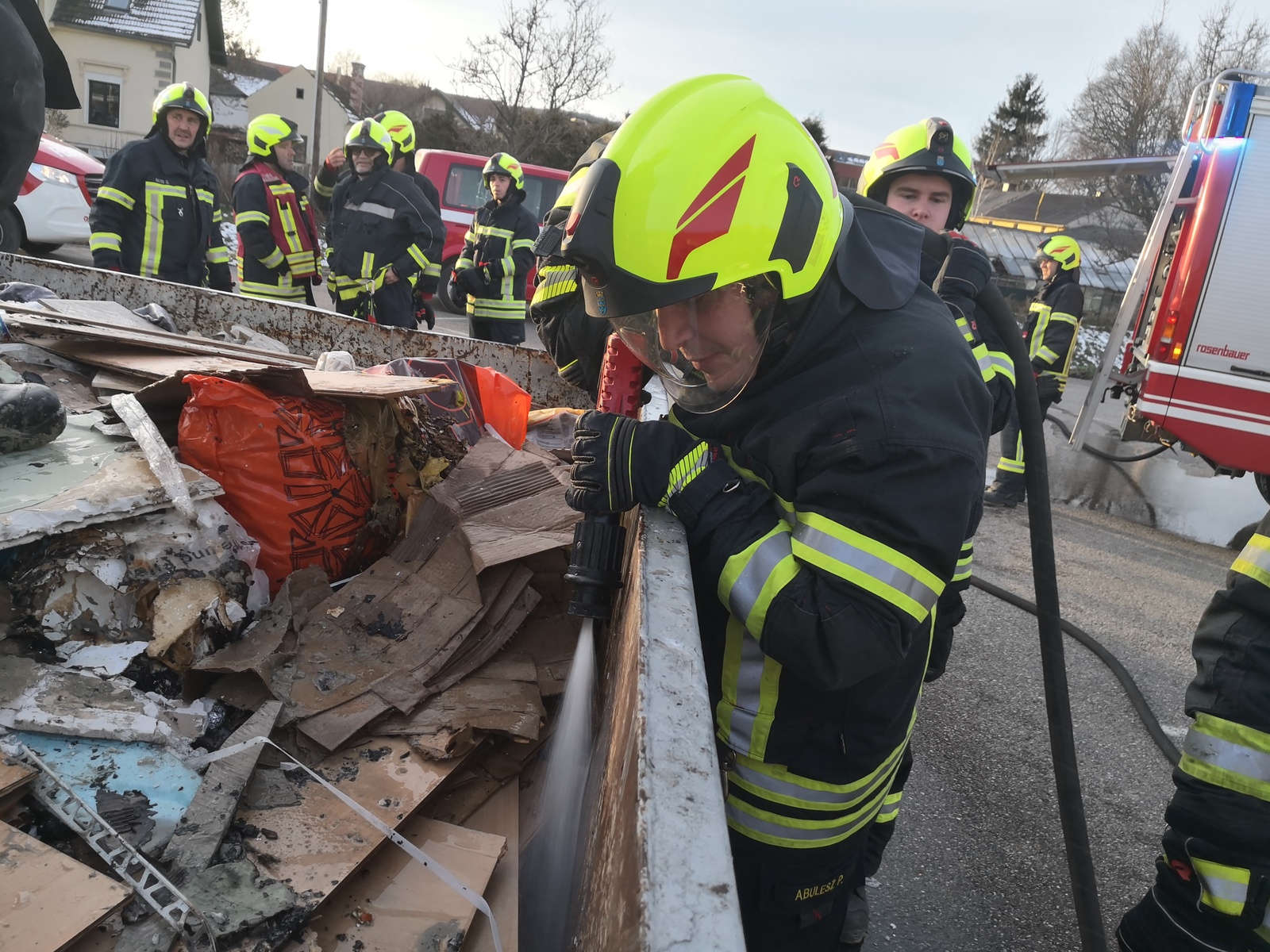 Am Nachmittag des Neujahrstags wurde die Feuerwehr Sieghartskirchen zu ihrem ersten Einsatz des Jahres 2026 alarmiert. In der Badgasse war ein Feuer in einer Bauschutt-Mulde ausgebrochen. Aufmerksame Passanten hatten den Brand bemerkt und die Feuerwehr verständigt, sowie mit Wasserkübeln erste Löschversuche unternommen.