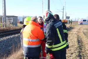 Am Sonntagmittag wurden die Feuerwehren Neuaigen und Absdorf zur Unterstützung in den Bezirk Korneuburg alarmiert, gemeinsam mit den Feuerwehren Stetteldorf, Eggendorf und Niederrußbach wurden sie zu einem Verkehrsunfall mit Menschenrettung alarmiert. Auf der Eisbahnkreuzung der Eisenbahnstrecke Absdorf – Stockerwischen Stetteldorf und Neuaigen stieß ein ÖBB Personenzug mit einem PKW zusammen.