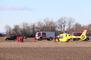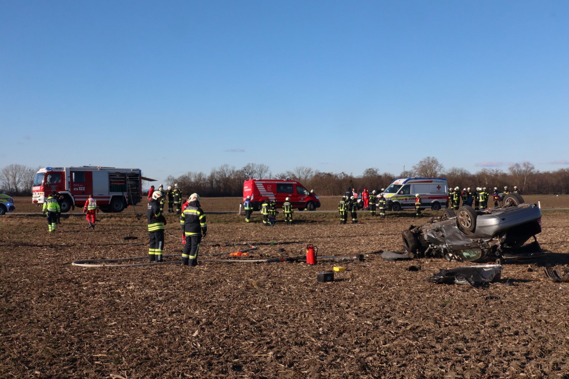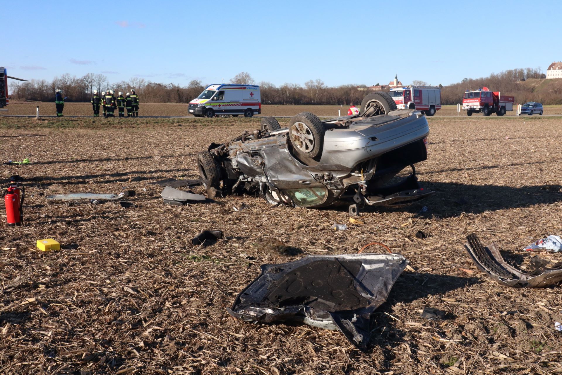Durch den Zusammenprall wurde der PKW in das angrenzende Feld geschleudert, der Lenker konnte sich selbst aus dem Fahrzeug befreien und befand sich beim Eintreffen der Einsatzkräfte schwer verletzt am Straßenrand.
