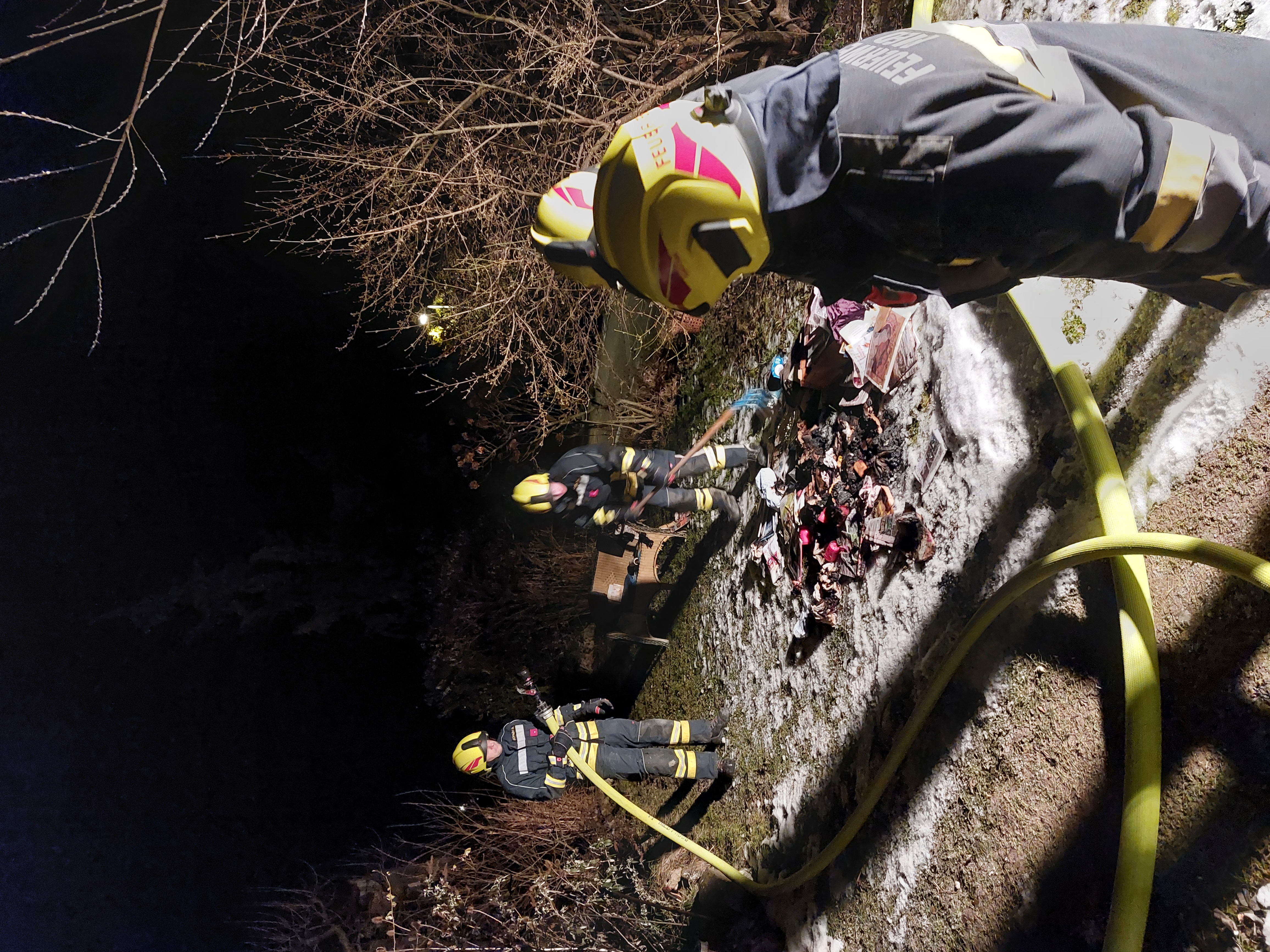 Beim Eintreffen waren Polizei und Rettung bereits vor Ort. Das Haus war stromlos, und unter Atemschutz wurde ein Innenangriff durchgeführt. Glutnester wurden mittels Wärmebildkamera aufgespürt, und Nachlöscharbeiten im Freien abgearbeitet.