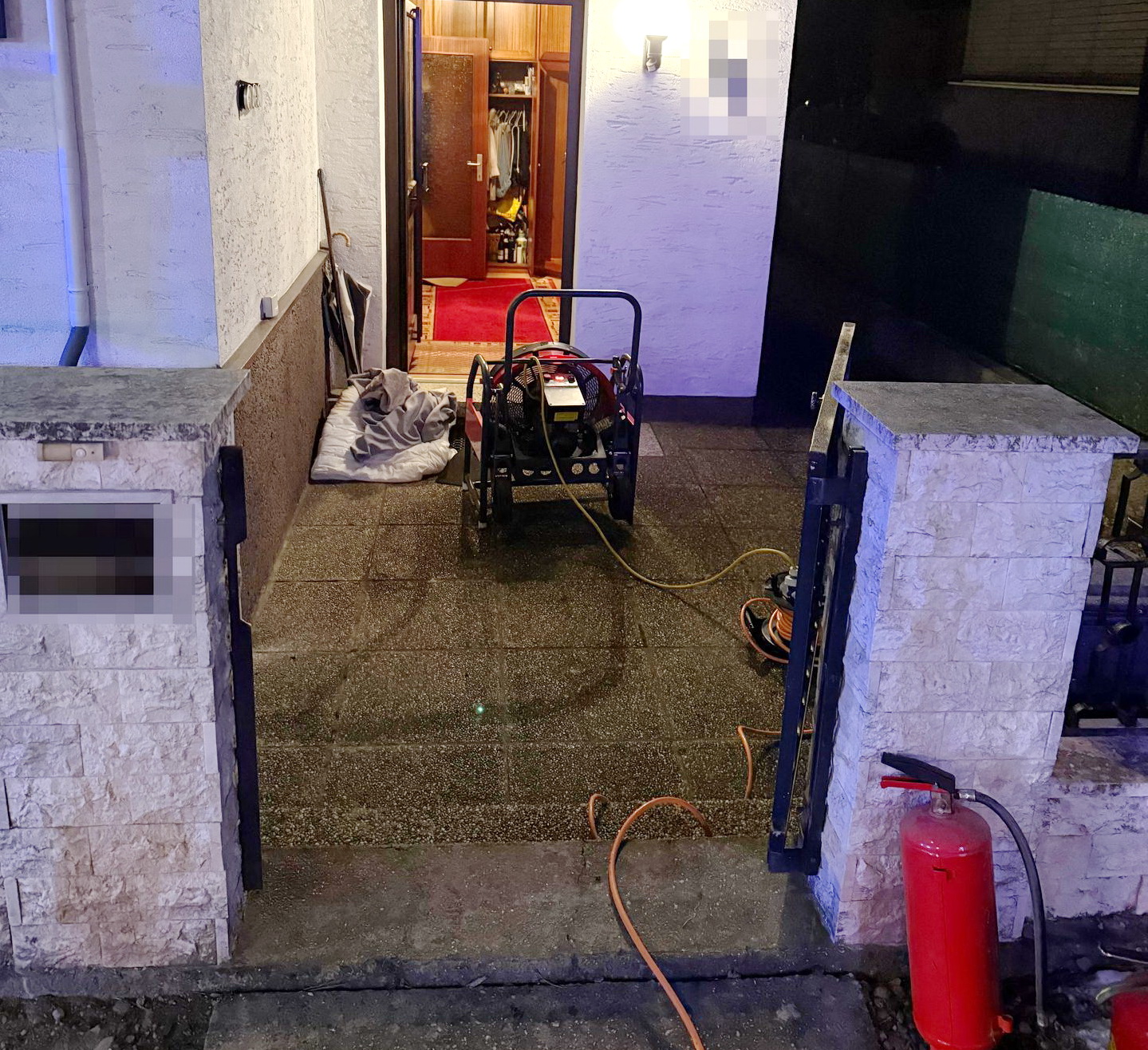 Beim Eintreffen der Einsatzkräfte wurde festgestellt, dass eine Matratze noch gloste. Weitere kleinere Brandlasten hatte die Eigentümerin bereits eigenständig aus dem Fenster ins Freie verbracht. Um das Gebäude rasch rauchfrei zu machen, wurde mittels Hochleistungslüfter eine Druckbelüftung durchgeführt. Verbliebene, bereits abgebrannte Gegenstände wurden aus dem Gebäude entfernt und gezielt nachgelöscht.