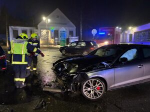 Im Kreuzungsbereich am Hauptplatz waren zwei PKW miteinander kollidiert. Nach dem Eintreffen wurde die Unfallstelle abgesichert und der Verkehr entsprechend geregelt. Die beteiligten Fahrzeuge wurden gesichert abgestellt, außerdem wurde die Fahrbahn von Fahrzeugteilen und Trümmern befreit.