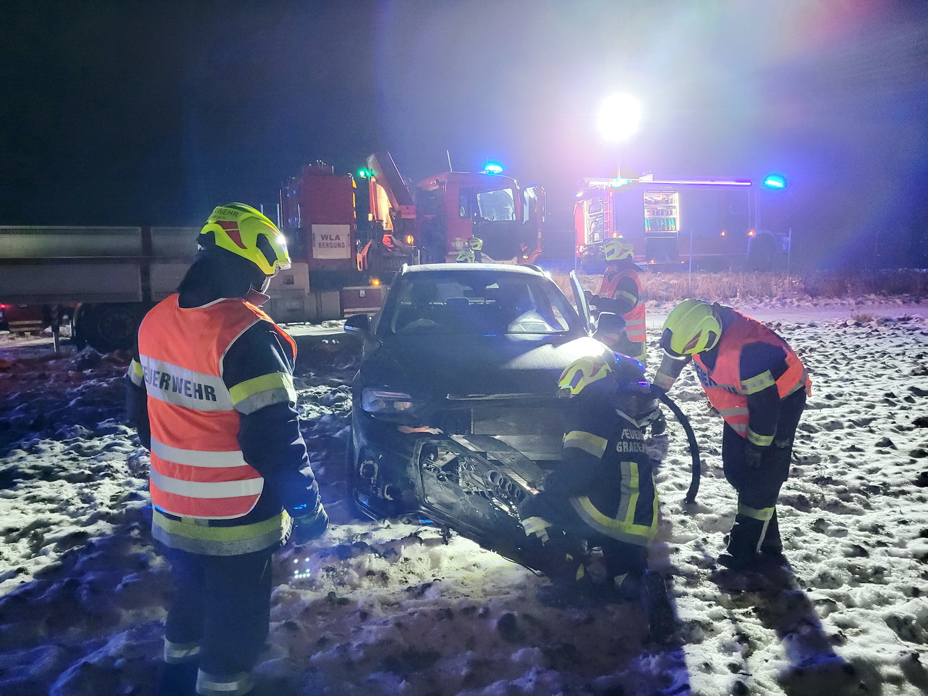 Frühmorgens am Faschingsdienstag, 17.02.2026 wurde die Feuerwehr Grafenwörth zur Unterstützung der Feuerwehr Utzenlaa zu einer Fahrzeugbergung auf die S5 alarmiert. Ein PKW war von der Fahrbahn abgekommen, hatte den Wildschutzzaun durchschlagen und war anschließend im angrenzenden Feld hart aufgeschlagen. Die Passagiere blieben dabei glücklicherweise unverletzt.