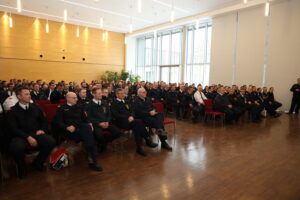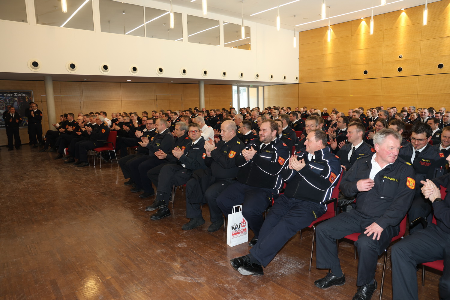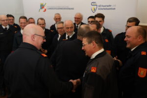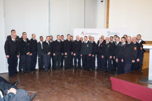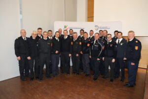 Nach der Angelobung aller Abschnitts- und Unterabschnittskommandanten durch Bezirksfeuerwehrkommandant Oberbrandrat Christian Burkhart gratulierte er allen Feuerwehrfunktionären und Funktionärinnen und hoffte auf eine gute Zusammenarbeit.