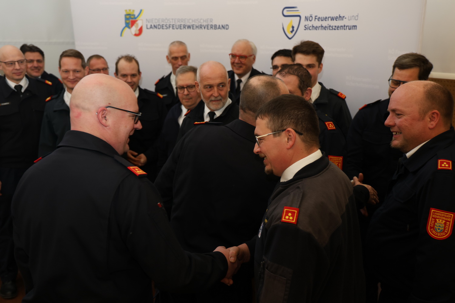 Der Hausherr und Leiter des NÖ Feuerwehr- und Sicherheitszentrums, Bundesfeuerwehrrat Thomas Docekal, gratulierte ebenfalls und freute sich schon auf eine kameradschaftliche Zusammenarbeit mit den Funktionären des Bezirkes Tulln.