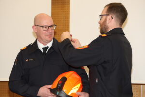 Bild IMG_4349: Symbolische Übergabe des Einsatzleiterhelmes für den Bezirkskommandantenstellvertreter von Dominik Rauscher an Johannes Ofner