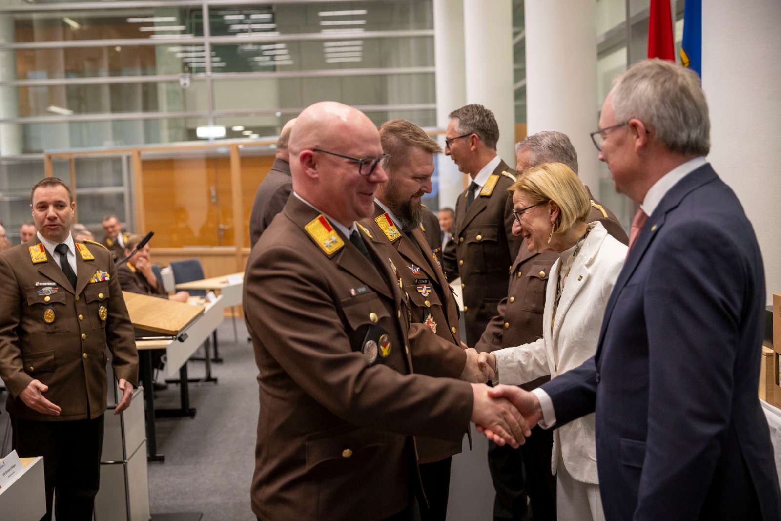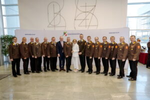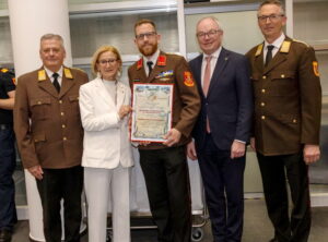 Im Rahmen der Veranstaltung wurden die Bezirksfeuerwehrkommandanten und ihre Stellvertreter von Johanna Mikl-Leitnerfeierlich angelobt. Der scheidende Bezirksfeuerwehrkommandantstellvertreter Dominik Rauscher bekam aus den Händen der Landeshauptfrau eine Dankesurkunde.