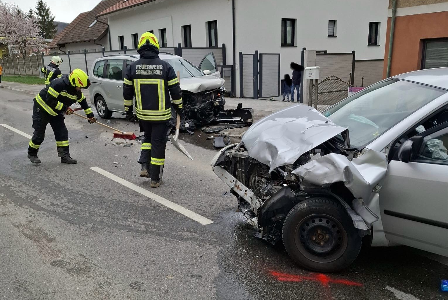 Am Dienstag, dem 31. März, wurde die Feuerwehr um 15:21 Uhr zu einem Frontalzusammenstoß zweier Pkw alarmiert. Beim Eintreffen der Einsatzkräfte standen bereits mehrere verletzte Personen fest: Insgesamt vier Menschen, darunter zwei Kinder im Alter von sechs und acht Jahren, wurden verletzt. Die Kinder wurden vor Ort mit einem sogenannten „Traumabären“ betreut, um sie zu beruhigen. Nach der medizinischen Erstversorgung und dem Abtransport durch das Rote Kreuz sicherte die Feuerwehr die Unfallfahrzeuge und reinigte die Fahrbahn.