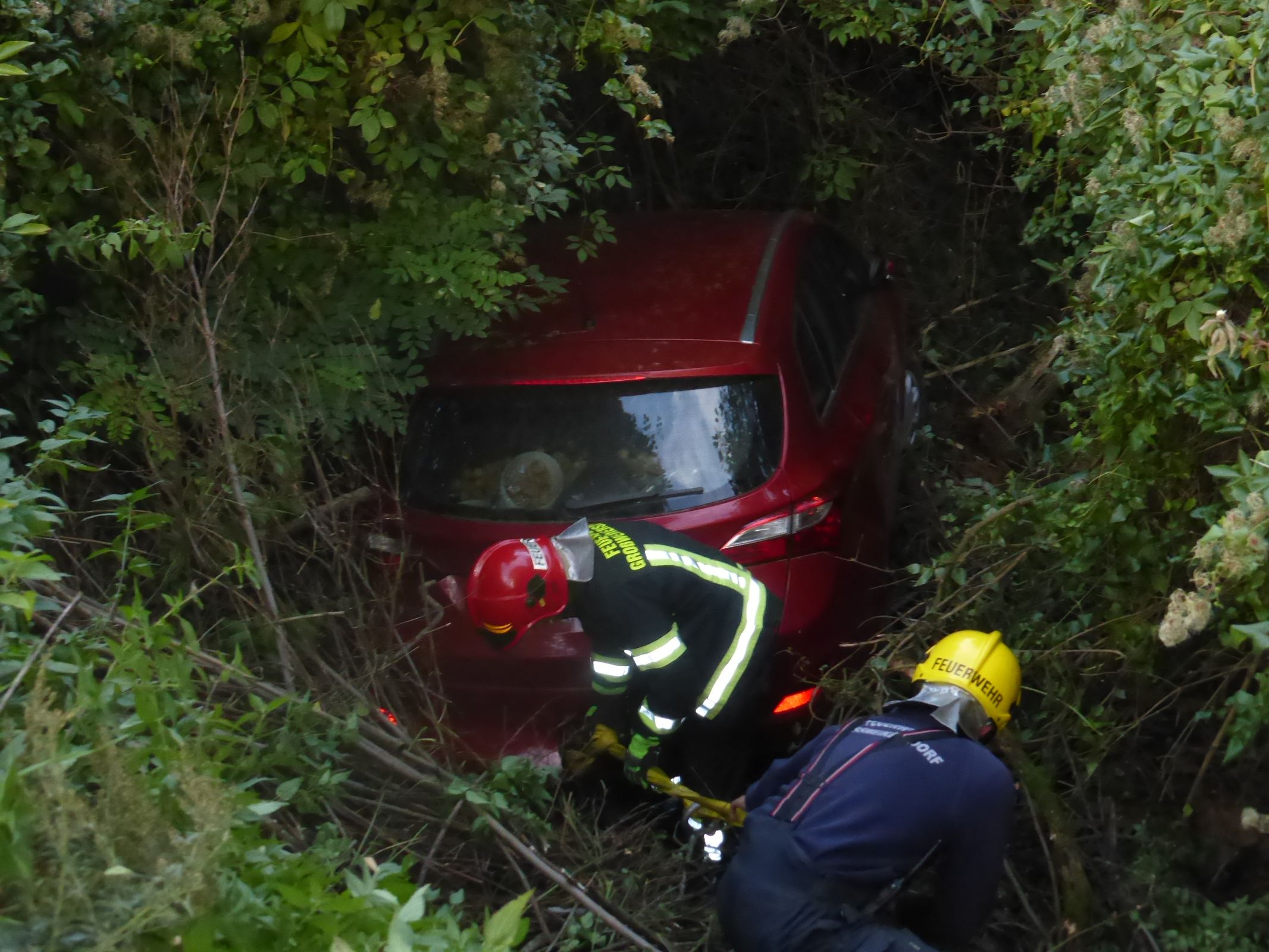 In einem Weingarten zwischen Großweikersdorf und Großwiesendorf geriet ein PKW ins Rollen, und stürzte anschließend mehrere Meter eine steile Böschung hinab. Der Fahrzeuglenker rief daraufhin die Feuerwehr zu Hilfe und begab ich zu Fuß nach Großweikersdorf zum Lagerhaus, um dort die Einsatzkräfte in Empfang zu nehmen. Der Einsatzleiter erkundete mit dem Voraus-Quad die Lage, anschließend wurde die Bergung vorbereitet. Lediglich das Quad konnte als einziges Einsatzfahrzeug die Unfallstelle erreichen, daher wurde im Vorfeld die benötigte Ausrüstung auf dieses Verladen. Die Einsatzmannschaft musste sich zu Fuß zur Unfallstelle begeben. Für die Bergung musste ein Zaun, sowie einige Sträucher entfernt werden. Anschließend wurde der PKW mit mehreren Rundschlingen und einem, vom Fahrzeugbesitzer organisierten, Traktor die Böschung hinauf gezogen. Anschließend wurde der PKW vom Traktor aus dem Weingarten gezogen. Die weitere Bergung wurde vom Fahrzeugbesitzer organisiert und die Feuerwehr konnte wieder ins FF-Haus einrücken.