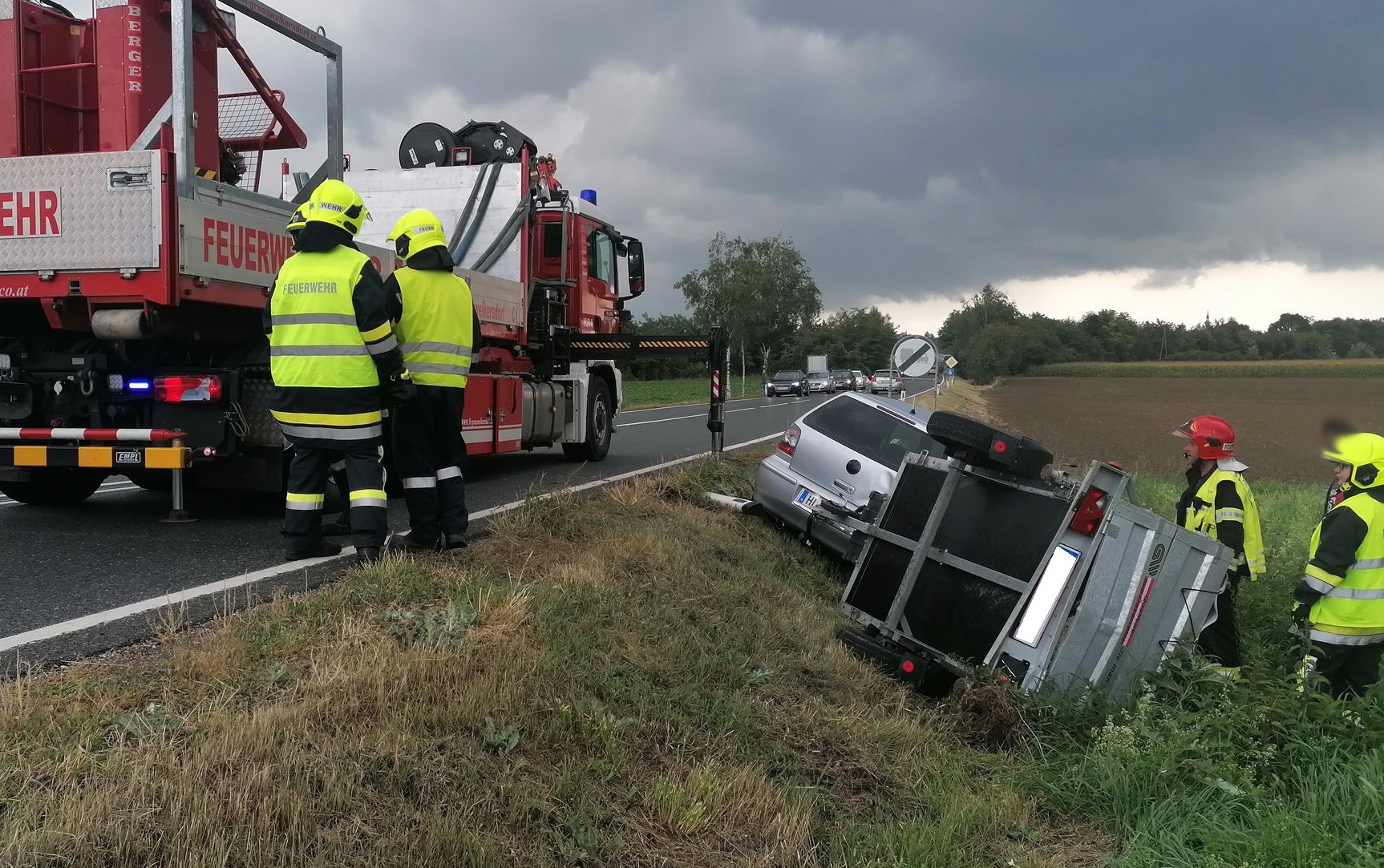 Auf der Bundestraße 4 zwischen Großweikersdorf und Baumgarten am Wagram bei Kilometer 19,6 hatte ein Fahrzeuglenker die Herrschaft über sein Fahrzeug verloren und war samt Anhänger im Straßengraben gelandet. Beide Fahrzeuginsassen waren dabei glücklicherweise unverletzt geblieben und konnten den PKW selbstständig verlassen. Mittels Kran wurde zunächst der PKW-Anhänger geborgen und danach der der VW Polo. Der PKW konnte seine Fahrt fortsetzten, aber für den Anhänger war auf Grund der Beschädigungen die Reise zu Ende und er wurde abtransportiert und gesichert abgestellt.