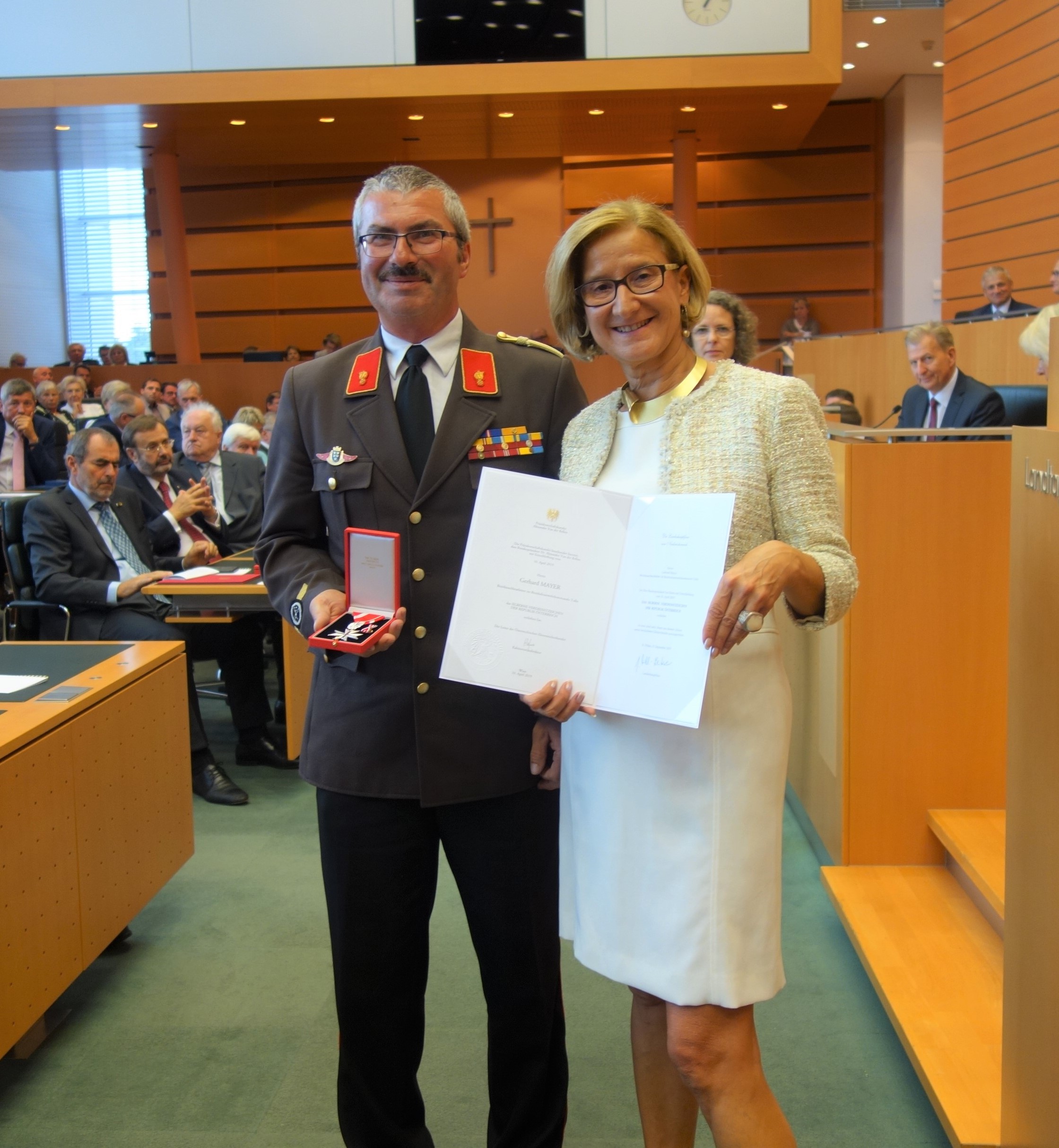 Mit Entschließung vom 10.4.2019 wurde durch unseren Bundespräsident Dr. Alexander Van der Bellen an Bezirkssachbearbeiter Nachrichtendienst im Bezirksfeuerwehrkommando Tulln und Mitglied der FF Freundorf, Herrn Gerhard Mayer, das Silberne Verdienstzeichen der Republik Österreich für seine umfangreichen Verdienste auf dem Gebiete des Feuerwehrwesens verliehen. Diese hohe Auszeichnung wurde am 17.9.2019 durch unsere Landeshauptfrau Mag. Johanna Mikl-Leitner im Rahmen eines Festaktes im Sitzungssaal der NÖ Landesregierung übergeben.