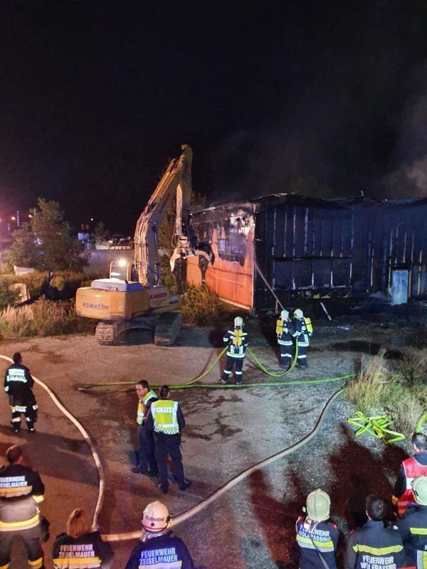 Im Gewerbegebiet Ost in Zeiselmauer brach heute in der Nacht ein Brand aus. Betroffen war eine Tischlerei. Als die Feuerwehren gegen 0130 Uhr am Einsatzort eintrafen stand das Brandobjekt im Vollbrand. Auf Grund der massiven Hitzeentwicklung musste das Feuer zunächst mit einem Wasserwerfer niedergeschlagen werden. Dann wurde der Brand von den Einsatzkräften mit schwerem Atemschutz bekämpft. Das Gebäude brannte bis auf die Grundmauern nieder. Um besser an den Brandherd und die Glutnester zu gelangen, wurde ein Bagger angefordert. Damit wurde das Blechdach entfernt. Durch den Einsatz der Feuerwehr konnten ein Übergreifen auf andere Objekte im Gewerbegebiet verhindert werden. Warum der Brand ausgebrochen ist, ist nicht bekannt. Die Brandursache ist Gegenstand von Untersuchung der Brandermittler der Polizei. Im Einsatz standen elf Feuerwehren mit 150 Frauen und Männer. Folgende Kräfte waren im Einsatz: · FF Zeiselmauer (örtl. Zuständig) · Wolfpassing · Königstetten · St. Andrä/ Wördern · Hintersdorf · Kirchbach · Altenberg · Muckendorf-Wipfing · Langenlebarn · Hadersfeld · Tulbing · Rotes Kreuz St. Andrä-Wördern · Rotes Kreuz Tulln · Rotes Kreuz Klosterneuburg · Polizei Stand Andrä-Wördern