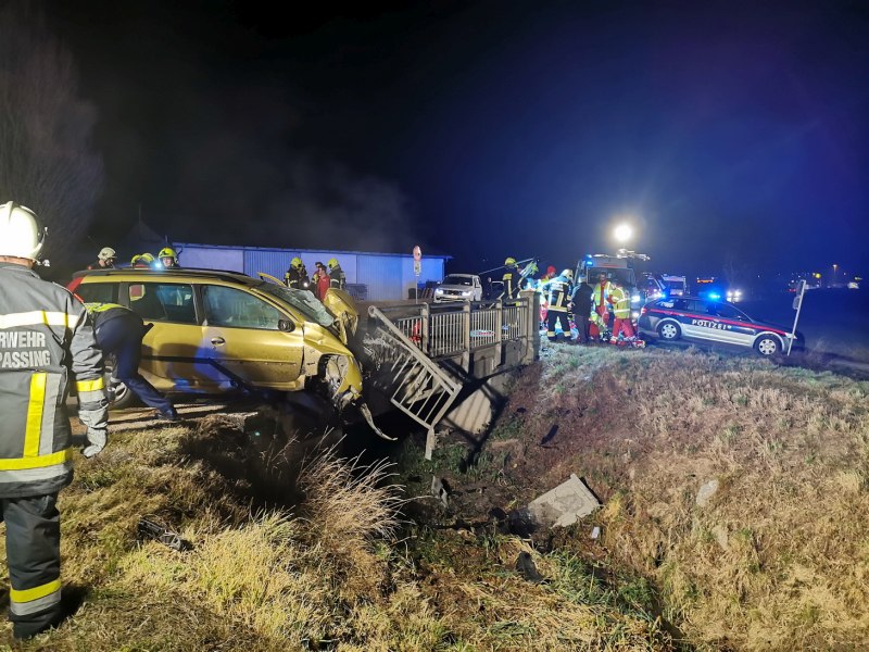 Am Freitag am Abend wurde die Feuerwehren Königstetten und Wolfpassing zu eine Verkehrsunfall mit eingeklemmter Person gerufen. Ein PKW war auf der L128 kurz vor Königstetten (Bez. Tulln) gegen ein Brückengeländer geprallt. Beim Eintreffen am Unfallort war der Rettungsdienst vor Ort. Der verunfallte Lenker wurde bereits von den Sanitätern und dem Notarztteam wiederbelebt. Die Feuerwehr sicherte die Unfallstelle ab, richtete mit der Polizei eine Umleitung ein. Während der Reanimation musste von der Feuerwehr, wegen ein paar Schaulustigen, ein Sichtschutz aufgebaut werden. Auch die Wasserrechtsbehörde wurde verständigt. Der Unfalllenker verstarb leider noch am Unfallort seinen schweren Verletzungen. Als die Polizei den Unfallwagen freigegeben hatte wurde das Wrack geborgen und dann sicher abgestellt. Im Einsatz waren: · FF Königstetten 20 Mann 4 Fahrzeuge · FF Wolfpassing 9 Mann zwei Fahrzeuge · Bezirksfeuerwehrkommando Tulln – ÖA-Team · RK Tulln · RK Klosterneuburg · RK Bezirkseinsatzleiter · Polizei Königstetten · Polizei St. Andrä Wördern · Bereitschaftsdienst der Straßenmeisterei