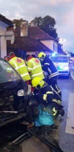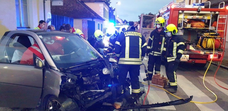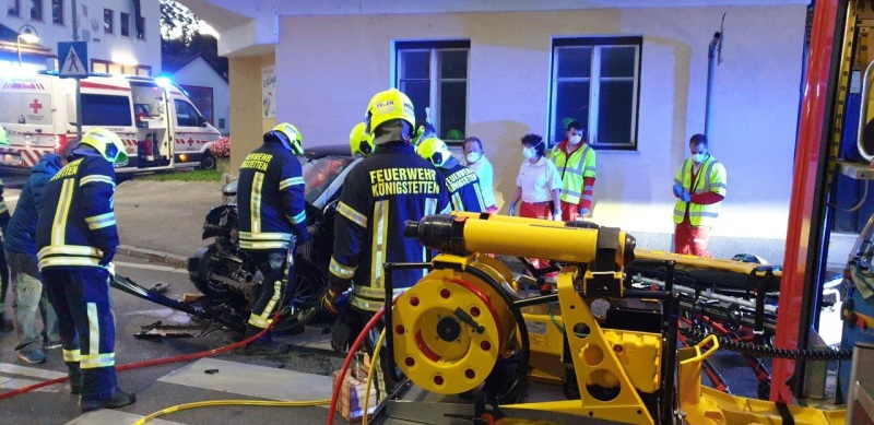 Die FF Königstetten wurde um 06:35 Uhr zu einem Verkehrsunfall Im Kreuzungsbereich beim Feuerwehrhaus alarmiert. Situation beim Eintreffen: Zwei PKW waren aus unbekannter Ursache frontal zusammengestoßen wobei anschließend der Smart ca. 30 m zurückrollte und bei einer Hausmauer zum Stehen kam. Tätigkeiten am Einsatzort: 2 RTW und ein Notarztwagen versorgten die insgesamt 3 verletzten Personen. Der Lenker und die Beifahrerin des Mitsubishi Colt wurden sofort ins Universitätsklinikum Tulln gebracht. Der Fahrer des Smart musste über die Fahrerseite gerettet werden. Dazu war es notwendig, in Absprache mit dem Notarzt, die Fahrertür mittels hydraulischen Rettungssatz zu entfernen. Anschließend wurde die Person mit Verletzungen unbestimmten Grades ebenfalls ins Spital nach Tulln gebracht. Nach Freigabe und Anordnung durch die Polizei wurden beide Fahrzeuge ins Gemeindesammelzentrum mittels Abschleppachse geschleppt und sicher abgestellt. Als die Fahrbahn gereinigt war, wurde der Verkehr – welcher großräumig umgeleitet werden musste – von der Polizei wieder freigegeben. Einsatzdauer: ca. 2 Std. Eingesetzte Kräfte: · 11 Mann FF Königstetten · KRFA-S · MTF-A · Abschleppachse · 2 Polizeistreifen · 2 RTW · 1 Notarztwagen