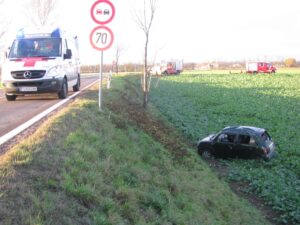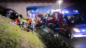 Lenker flog mit seinem Fahrzeug über Autobahnunterführung und prallte nach 25 Metern frontal gegen Böschung...