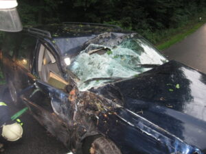 Aus bisher ungeklärter Ursache kam eine Lenkerin mit ihrem Auto von der Strasse ab und...